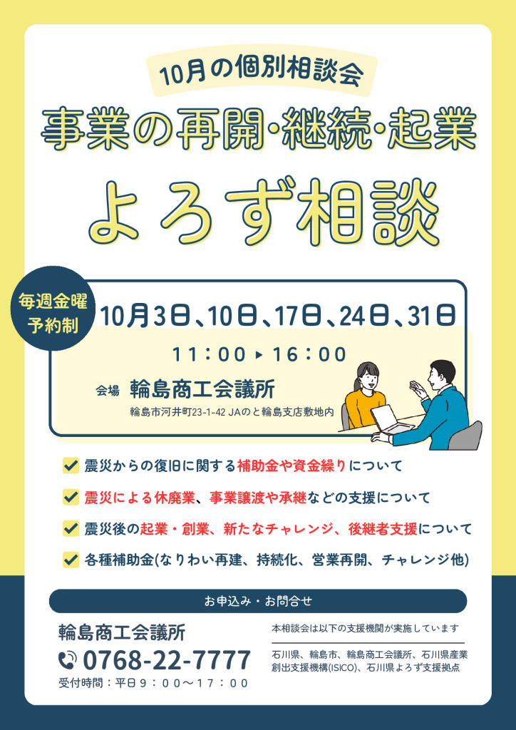 経営のよろず相談の実施(10月開催)について ※完全事前予約制